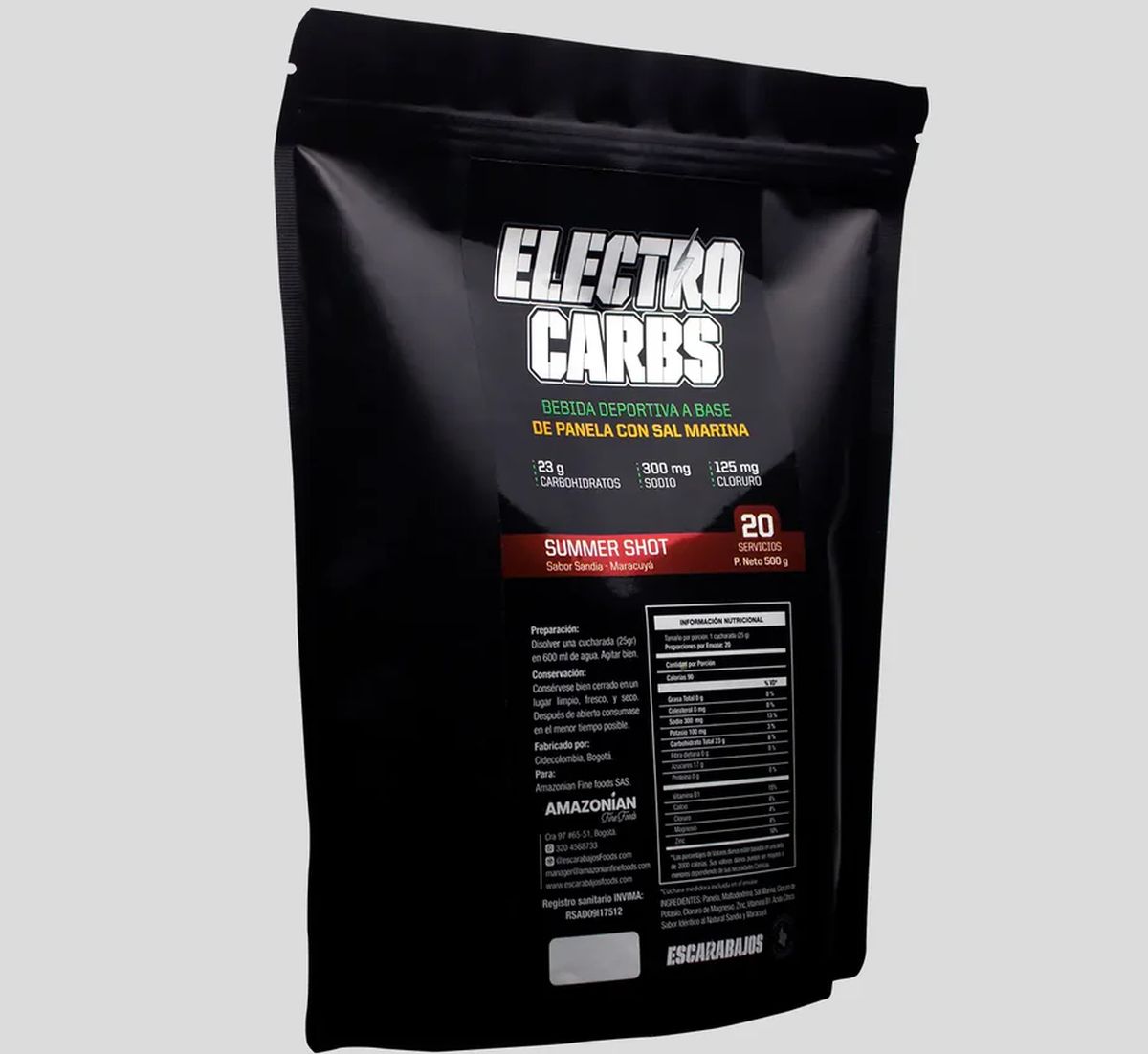 Mezcla a base de **panela** con **maltodextrina** como fuentes de carbohidratos, aportando en total 4 tipos de carbohidratos que optimizarán tus vías metabólicas para su conversión energética. Por su parte, la **sal marina** nos aporta dos de los principales elementos que perdemos durante la sudoración (aparte del agua 99%) que son **sodio** y **cloruro**, en pro de generar un estado de rehidratación y balance electrolítico óptimo.