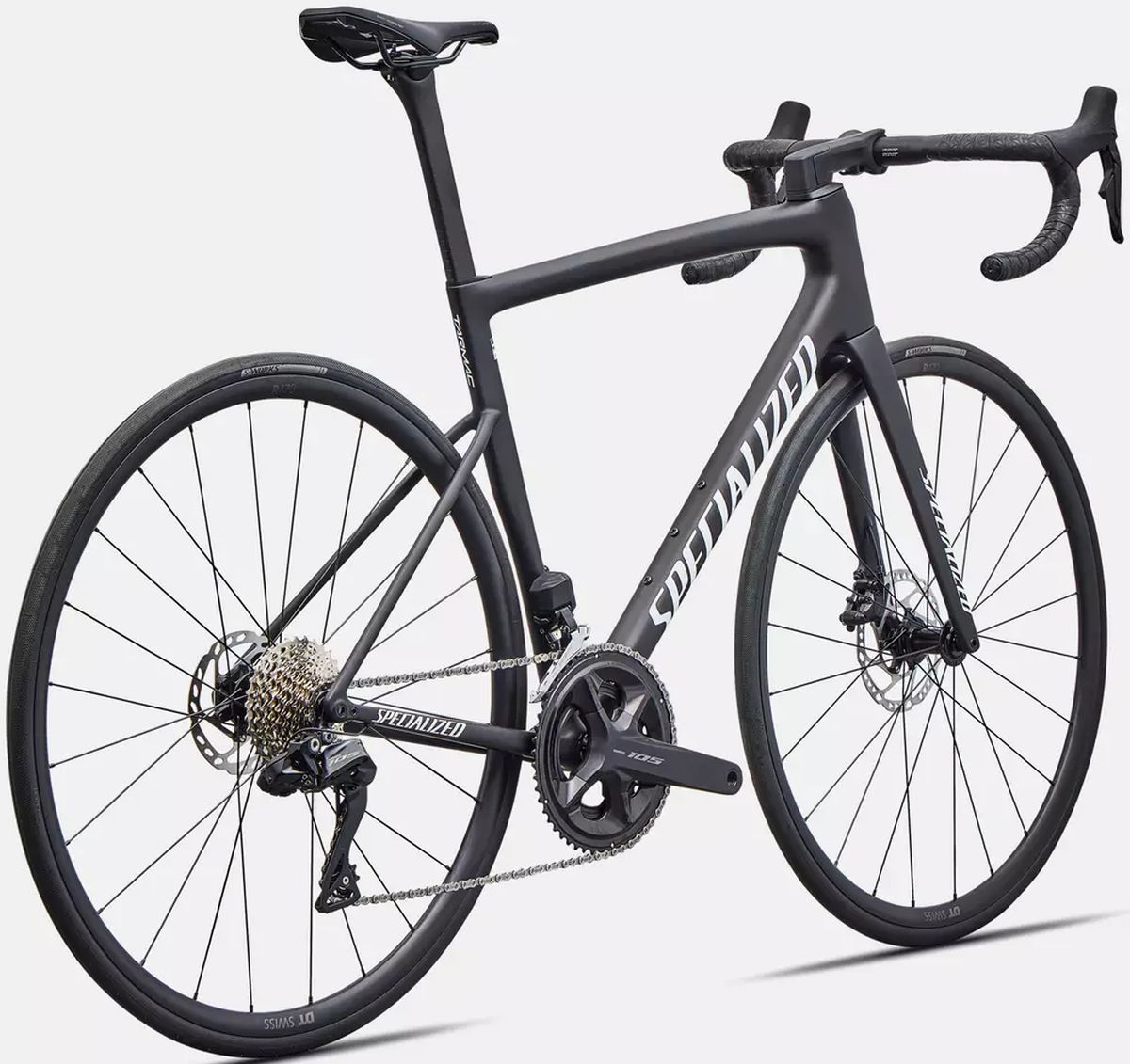 +2Rendimiento Y ComponentesGrupo Shimano 105 Di2: Transmision electronica inalambrica de 12 velocidades que ofrece un rendimiento de cambio profesional y preciso. Ruedas DT Swiss R470: Llantas de aluminio fiables y ligeras, con 20 mm de ancho interno y preparadas para tubeless. Versatilidad: Espacio libre para neumaticos de hasta 32 mm, permitiendo adaptar la bicicleta a terrenos mas exigentes o buscar mayor volumen de aire. Cockpit Integrado: Potencia Tarmac SL7 combinada con el manillar Specialized Shallow Drop para una estetica limpia y control ergonomico.