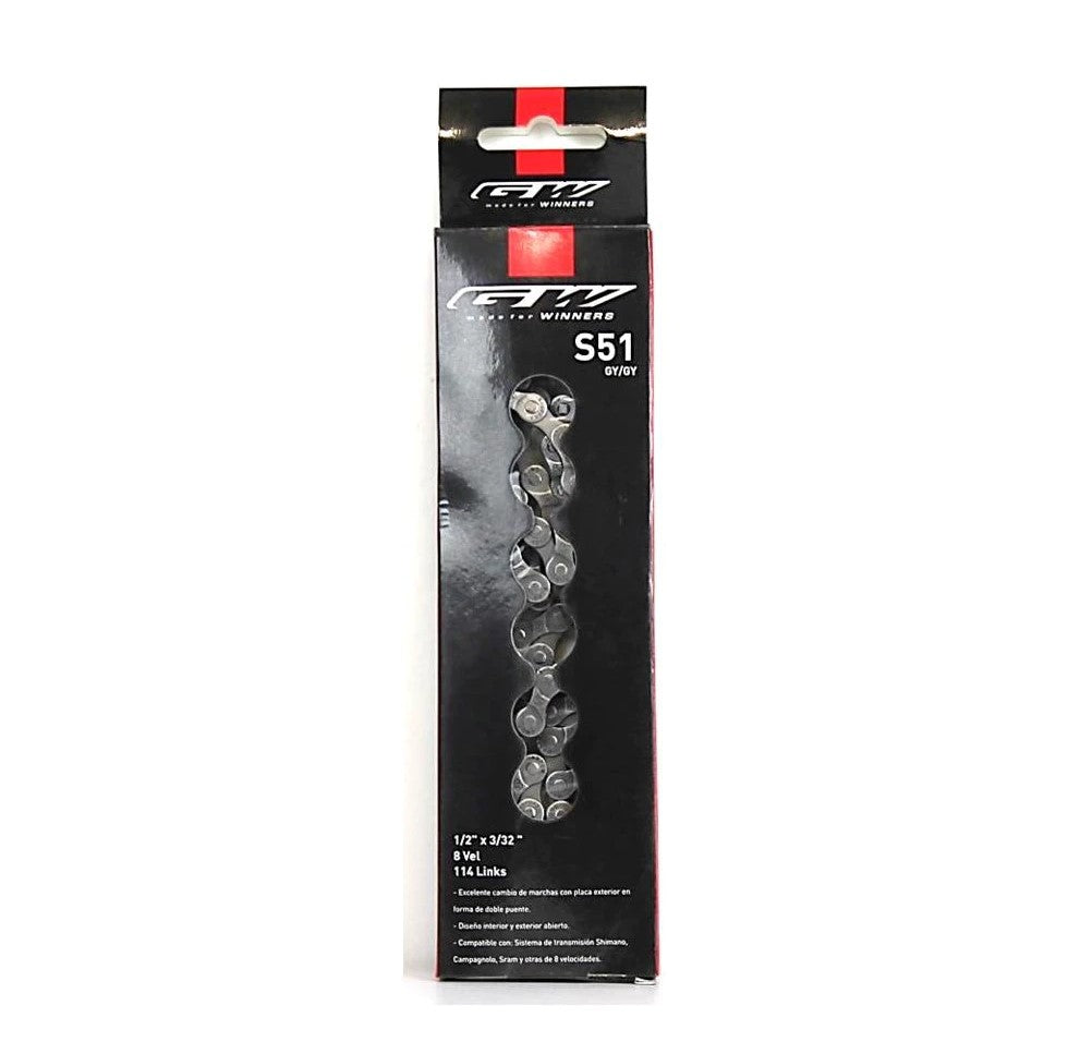 Cyclewear Tienda De CiclismoGw Cadenilla 1/2X3/32 X 116L S51 8 VelocidadesCadena Gw S51 8 Velocidades Para Bicicleta De Ruta O MontañaCompatible Con Todas Las Pachas Shimano / Sram / Gw De 8 VelocidadesS51Gw