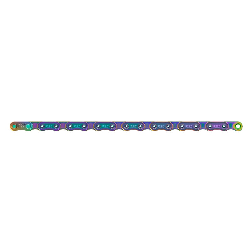Cadenilla Red 114 Links 12 Velocidades Tornasol.... Descripción: La Nueva Cadena Sram Red Fue Rediseñada Desde Cero. La Forma Única Del Eslabón Permite Que La Cadena Sea Más Angosta Y Liviana Al Mismo Tiempo Que Aumenta La Resistencia Y Proporciona Más Espacio Entre Las Placas Exteriores De La Cadena Y Los Engranajes A Ambos Lados. Resultado: Una Cadena Más Silenciosa Con Cambios Más Rápidos Y Precisos.Características: La Tecnología Flattop Permite Una Cadena Más Estrecha Con Un Funcionamiento Más Silencioso Y Mayor Resistencia Y Durabilidad... Placas Y Rodillos De Eslabones Internos Cromados Duros Para Reducir El Desgaste Y Prolongar La Vida Útil.... Construcción Hollowpin Para Mayor Resistencia Y Eficiencia.... Requiere Nuevo Flattop Powerlock.... Tecnología: Powerlock... Superficie Plana... Rango X... Especificaciones: Compatibilidad - Velocidad (Cn): 12S-Carretera.... Acabado Del Eslabón Exterior: Niquel.... Color - Enlace Exterior Plata... Acabado De Eslabón Interior Cromado... Color - Eslabón Interior Tornasol.... Conector De Cadena Powerlock D1 Longitud De La Cadena (Eslabones) 120 Enlaces... Variante De Pasador: Pasador Hueco... Compatibilidad Compatible Con Grupos Monoplato 1X Y Biplato 2X Y Con Todas Los Modelos De Grupos De La Linea Etap Axs 12 Velocidades De Sram