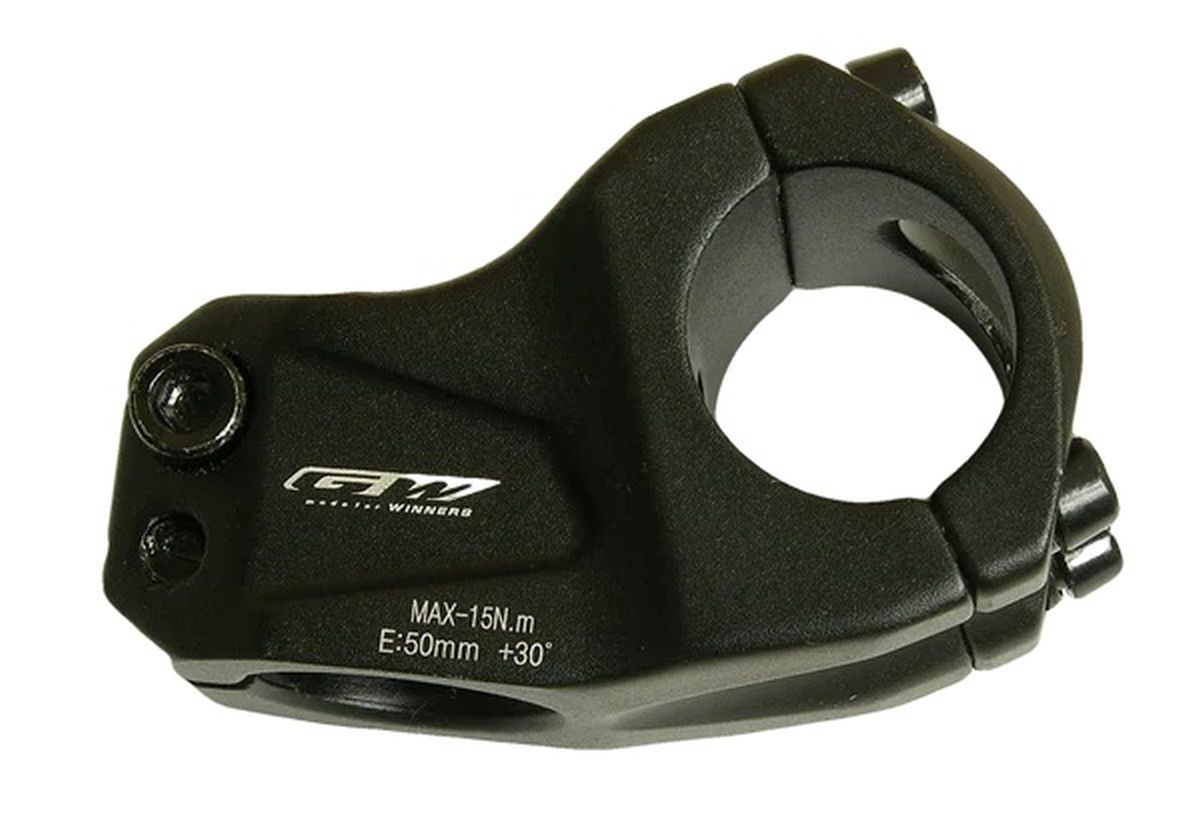 Tiene un largo de 50mm y un ángulo de inclinación de **30 grados**, lo que permite un ajuste preciso del manubrio para un mejor control. Es compatible con manubrios de **31.8mm** y tenedores rígidos o de suspensión oversize de **28.6mm**. La espiga cuenta con un acabado en color negro que la protege contra la corrosión y le da una apariencia duradera.