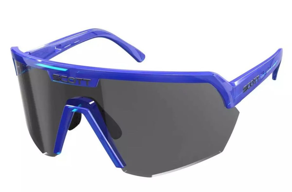 Las gafas de sol SCOTT de la gama Sport Shield color Galaxy Blue y lente Grey tienen un estilo vintage pero con un formato con tecnología moderna, además son muy ligeras y se integran perfectamente con el casco de ciclismo.