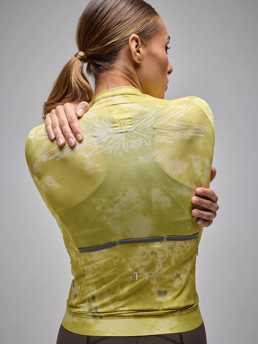 Este jersey combina un tejido italiano ultraligero con mangas aerodinámicas de corte limpio. Su tecnología avanzada garantiza una **absorción de humedad** excepcional y una **transpirabilidad superior**, manteniéndote seco y cómodo durante todo el recorrido. Está confeccionado con materiales de alto rendimiento **100% reciclados** (post-consumo), lo que asegura máximo desempeño y refleja un compromiso consciente con el planeta. Además, ofrece **Protección UV UPF50+** y ha sido **Hecho en Colombia**.