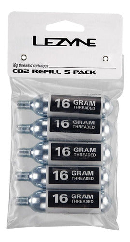 Cyclewear Tienda De CiclismoPaquete 5 Botellas Co2 16GCartuchos De Co2 Roscados Para Usar Con Todos Los Infladores De Co2 De Lezyne. Los Cartuchos De Co2 De 16 G Son Compactos Y Adecuados Para Neumáticos De Alta Presión.