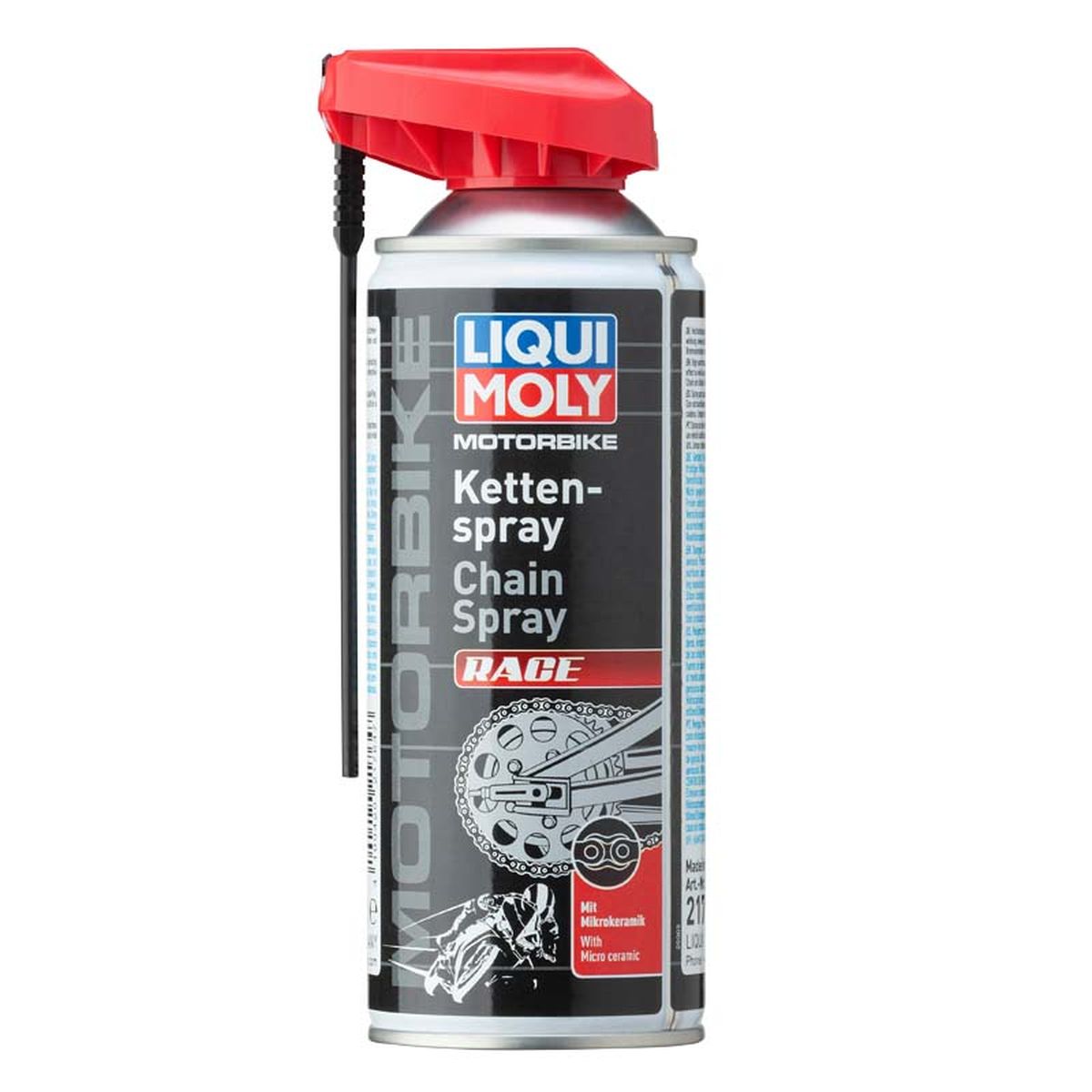 El Liqui Moly AC Moto Lubricante Cadena Race 400ml es un spray para cadenas de alto rendimiento, diseñado para resistir las condiciones más extremas, como carreras o pasos de montaña. Su fórmula, que combina lubricantes sólidos cerámicos con una potente protección química contra el desgaste, asegura una fricción mínima y maximiza la vida útil de tu cadena.