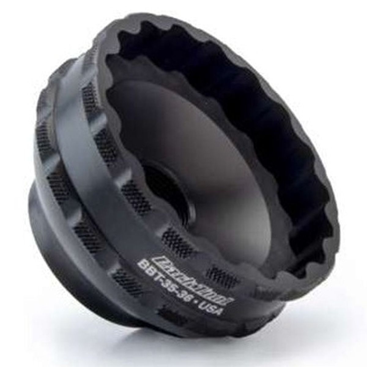 Una herramienta de aluminio maquinado con cnc de precisión para la instalación y extracción de soportes inferiores roscados selectos con accesorios de herramientas de 36 muescas, incluidos los soportes inferiores praxis works m35. Fabricado internamente por park tool, anodizado para una fácil identificación y con una unidad de 3/8 "compatible con llave de torsión/trinquete.